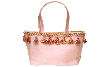 Pink Gaucho Handbag Pale pink raw silk handbag with multi-color trim and handmade tassels. $52.00