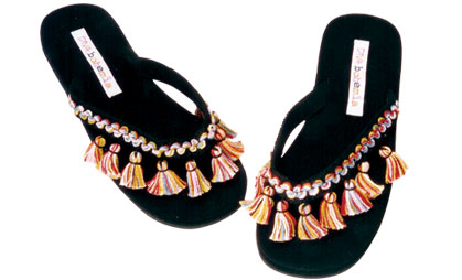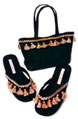 Black Gaucho Collection Rich black microfiber suede flip flop and black raw silk handbag, both with multi-color trim and handmade tassels. $100 (save 5% when ordering the set) $100.00(5% off of $106.00)