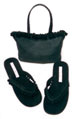 Black Tango Collection Rich black microfiber suede flip flop and black raw silk handbag, both with black ball trim. $97 (save 5% when ordering the set) $97.00 (5% off of $102.00)